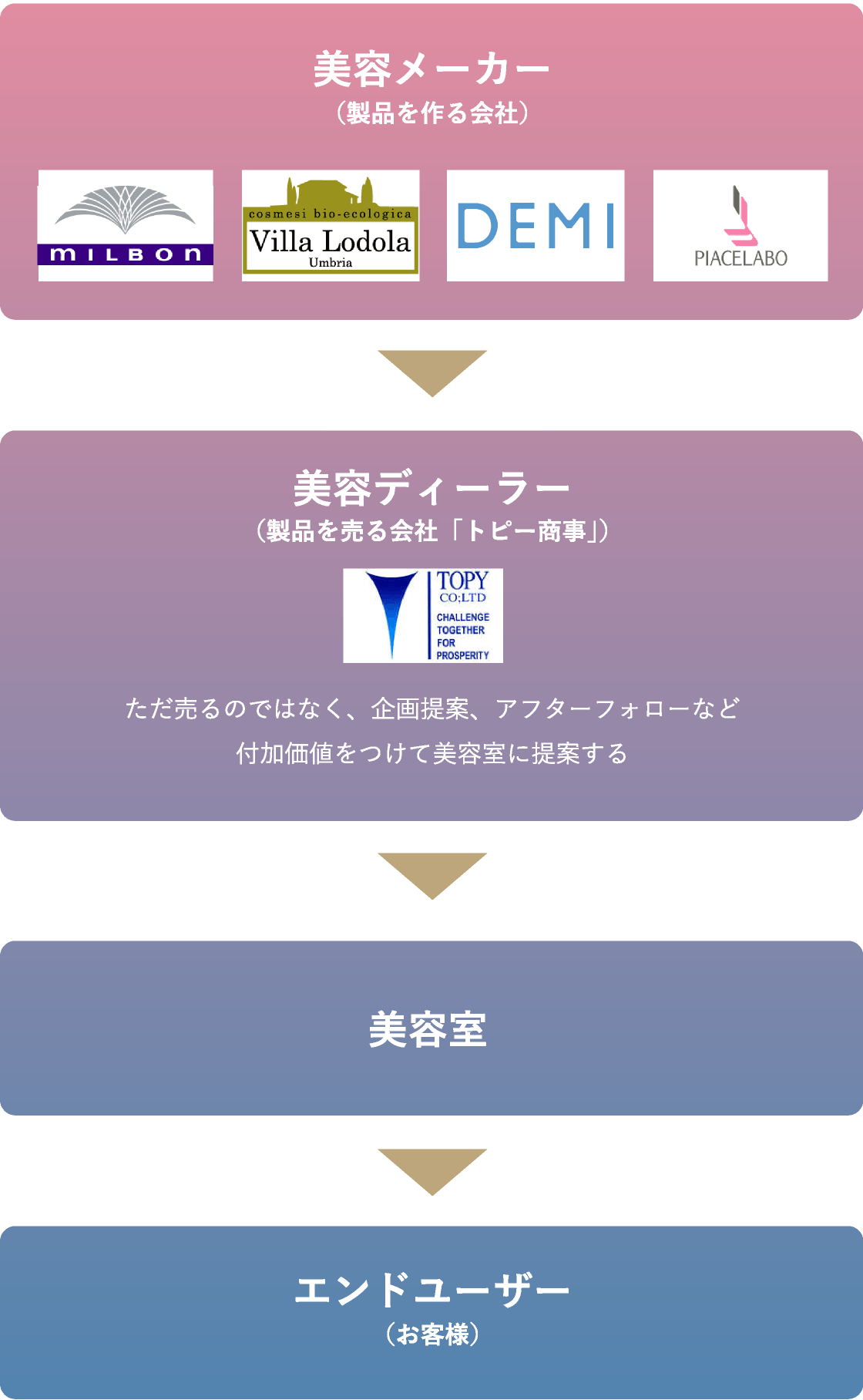 「美容ディーラー」は、美容メーカーと美容室をつなぐ会社ともいえます。